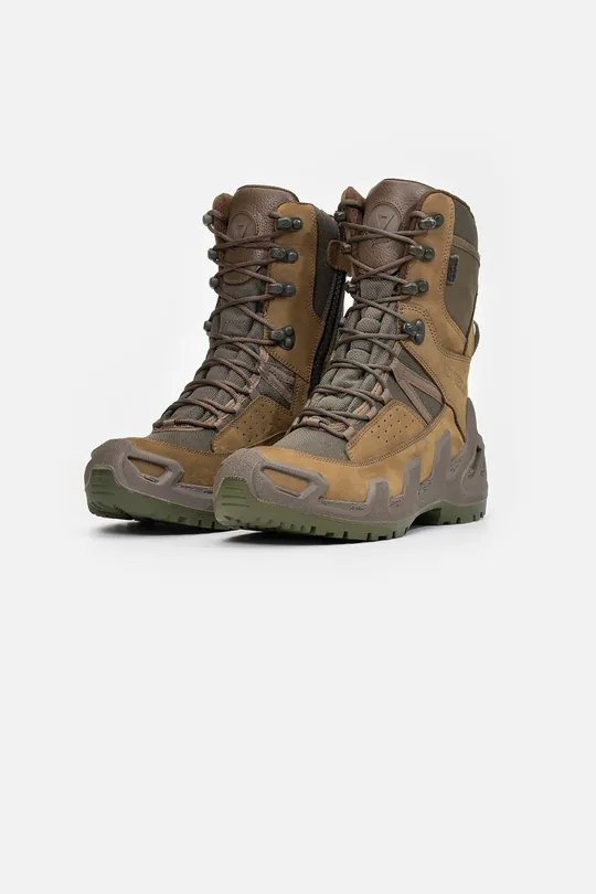 Dış Kısım: Su geçirmez, nefes alabilir nubuk deri ; CORDURA ® (Poliamid 6.6) hava geçirgen, dayanıklı örgü kumaş kullanılmıştır.